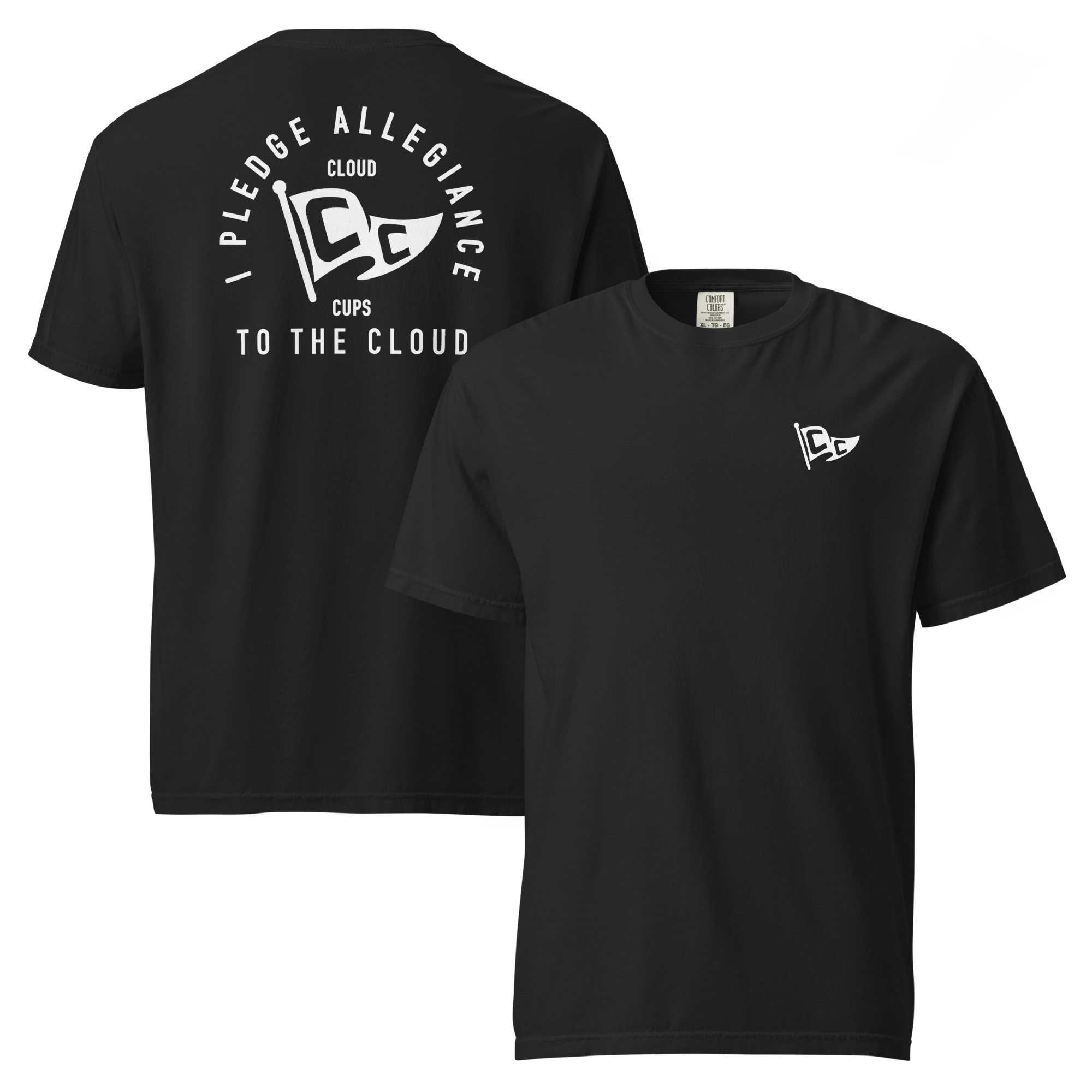 Pledge your loyalty to the flavor wave. The Cloud Cups™ Allegiance Tee is a bold statement piece for true fans of the cloud. Featuring the signature Cloud Cups™ flag logo on both the front and back, this heavyweight black tee is designed for comfort, style, and community.